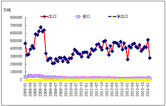 本月無縫管出口相對來講較1月低迷。國內(nèi)廠家停產(chǎn)檢修及室外工程量少等諸多因素影響,市場的需求一直萎靡不振,低迷的市場行情使得廠家生產(chǎn)力度減小,價(jià)格不停連續(xù)下跌,貿(mào)易商悲觀心態(tài)逐步顯現(xiàn),調(diào)貨補(bǔ)庫欲望并不強(qiáng)烈,在產(chǎn)量和進(jìn)口量同步陷入低迷狀態(tài)的情況下,凈出口值也處于低位徘徊狀態(tài)。全球經(jīng)濟(jì)狀況還未出現(xiàn)好轉(zhuǎn)跡象,市場回暖還需時(shí)日,與去年同期相比,當(dāng)前產(chǎn)能過剩、市場需求出現(xiàn)減少等等問題,除了鋼廠、現(xiàn)貨市場自我調(diào)節(jié)外,國家宏觀政策也是影響的一方面因素,但目前市場效果還未體現(xiàn)。