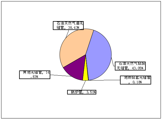 在出口增長比例上,除了石油天然氣鉆探無縫管和地質(zhì)鉆套無縫管有所增長外,石油天然氣道無縫管、鍋爐管和其他無縫管都有一定程度上的減少,幅度分別為0.03%、1.51%和1.20%。