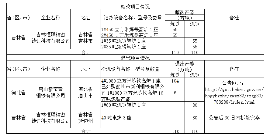 按照《國務(wù)院關(guān)于化解產(chǎn)能嚴重過剩矛盾的指導(dǎo)意見》、《國務(wù)院關(guān)于鋼鐵行業(yè)化解過剩產(chǎn)能實現(xiàn)脫困發(fā)展的意見》、《鋼鐵行業(yè)產(chǎn)能置換實施辦法》和中央環(huán)保督察整改工作要求,現(xiàn)將吉林恒聯(lián)精密鑄造科技有限公司現(xiàn)有2座450立方米煉鐵高爐和2座35噸煉鋼轉(zhuǎn)爐產(chǎn)能整改置換方案予以公示,歡迎社會公眾進行監(jiān)督。公示期為2021年6月23日-6月29日。聯(lián)系電話:0431-87077758。