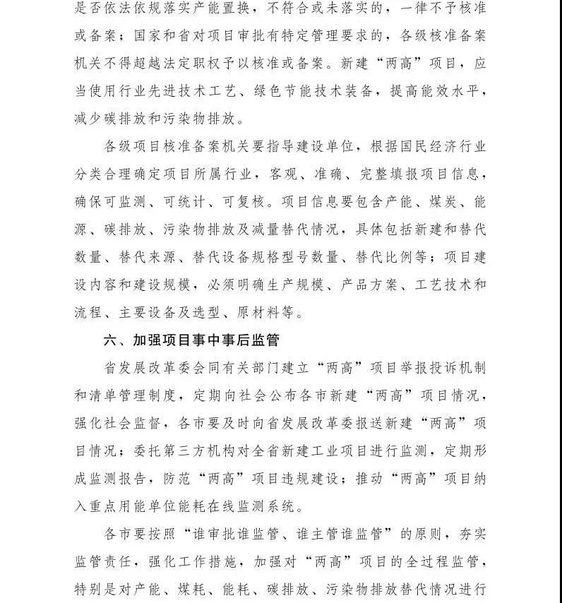 省發(fā)展改革委要加強(qiáng)“兩高”項(xiàng)目產(chǎn)能過(guò)剩分析預(yù)警、各市能耗煤耗存量分析,對(duì)新建“兩高”項(xiàng)目進(jìn)行業(yè)務(wù)指導(dǎo),深入論證建設(shè)的必要性、可行性,在核準(zhǔn)或備案“兩高”項(xiàng)目時(shí),要嚴(yán)格審查是否符合產(chǎn)業(yè)政策、產(chǎn)業(yè)規(guī)劃、“三線一單”、規(guī)劃環(huán)評(píng)要求,是否依法依規(guī)落實(shí)產(chǎn)能置換,不符合或未落實(shí)的,一律不予核準(zhǔn)或備案。新建“兩高”項(xiàng)目,應(yīng)當(dāng)使用行業(yè)先進(jìn)技術(shù)工藝、綠色節(jié)能技術(shù)裝備,提高能效水平, 減少碳排放和污染物排放。