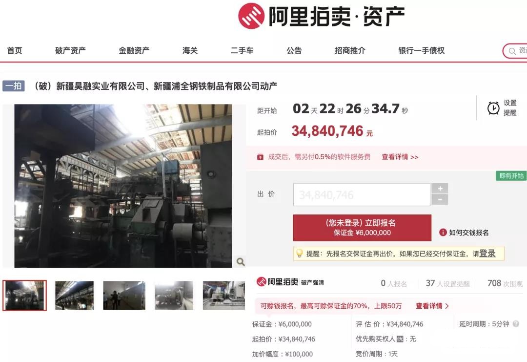 阿里拍賣網(wǎng)消息,新疆浦全鋼鐵制品有限公司破產(chǎn)清算,相關(guān)資產(chǎn)將于2021年7月2日上午10:00公開拍賣!
