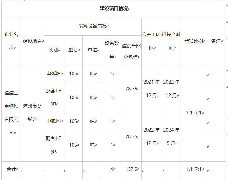 福建三寶鋼鐵有限公司煉鋼產(chǎn)能置換方案