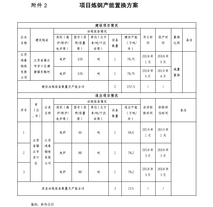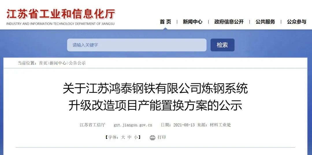 按照《國務(wù)院關(guān)于化解產(chǎn)能嚴(yán)重過剩矛盾的指導(dǎo)意見》、《國務(wù)院關(guān)于鋼鐵行業(yè)化解過剩產(chǎn)能實(shí)現(xiàn)脫困發(fā)展的意見》和《鋼鐵行業(yè)產(chǎn)能置換實(shí)施辦法》要求,現(xiàn)將江蘇鴻泰鋼鐵有限公司煉鋼系統(tǒng)升級項(xiàng)目產(chǎn)能置換方案予以公示,歡迎社會公眾進(jìn)行監(jiān)督。公示期為2021年8月13日至2021年9月2日。公示期間如有異議,請以書面形式向江蘇省工業(yè)和信息化廳反映情況。聯(lián)系電話:025-69652731(業(yè)務(wù)咨詢)、025-69652843(信訪舉報(bào))。