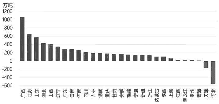 圖為2021年1—7月各省市粗鋼產(chǎn)量同比增量
