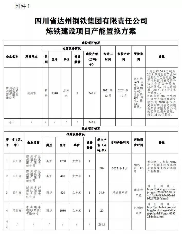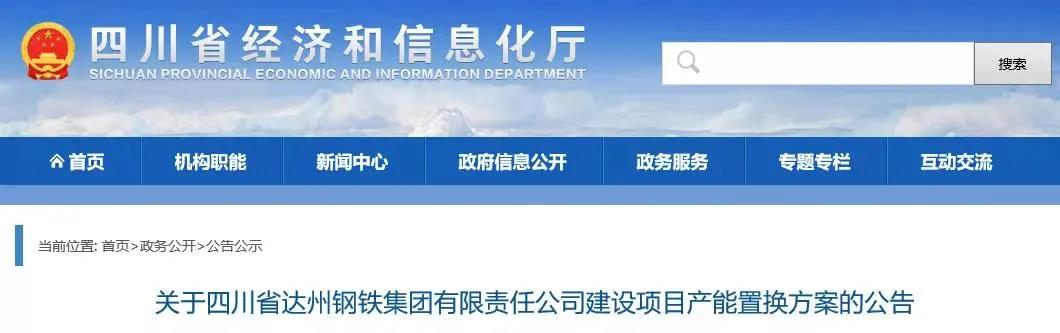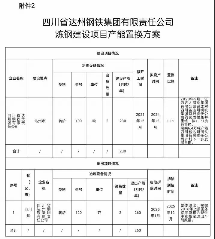 四川省達州鋼鐵集團建設項目產能置換方案公告