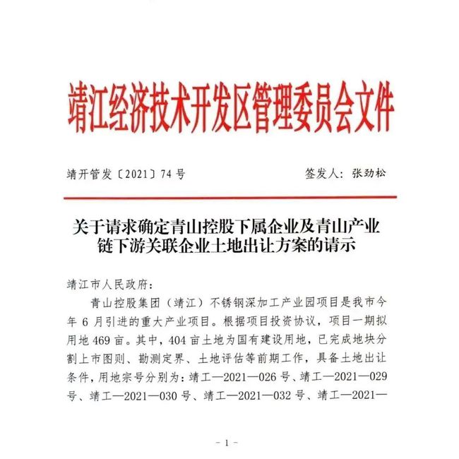 另據(jù)《關(guān)于請求確定青山控股下屬企業(yè)及青山產(chǎn)業(yè)鏈下游關(guān)聯(lián)企業(yè)土地出讓方案的請示》文件顯示,青山控股協(xié)同下游深加工企業(yè)共6家擬參與該404畝土地招拍掛的項目公司,均已完成注冊、備案等工作,正在開展前期的規(guī)劃設(shè)計工作。