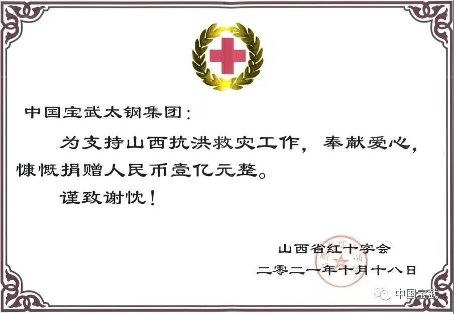 中國寶武太鋼集團向山西洪澇災(zāi)區(qū)捐款1億元
