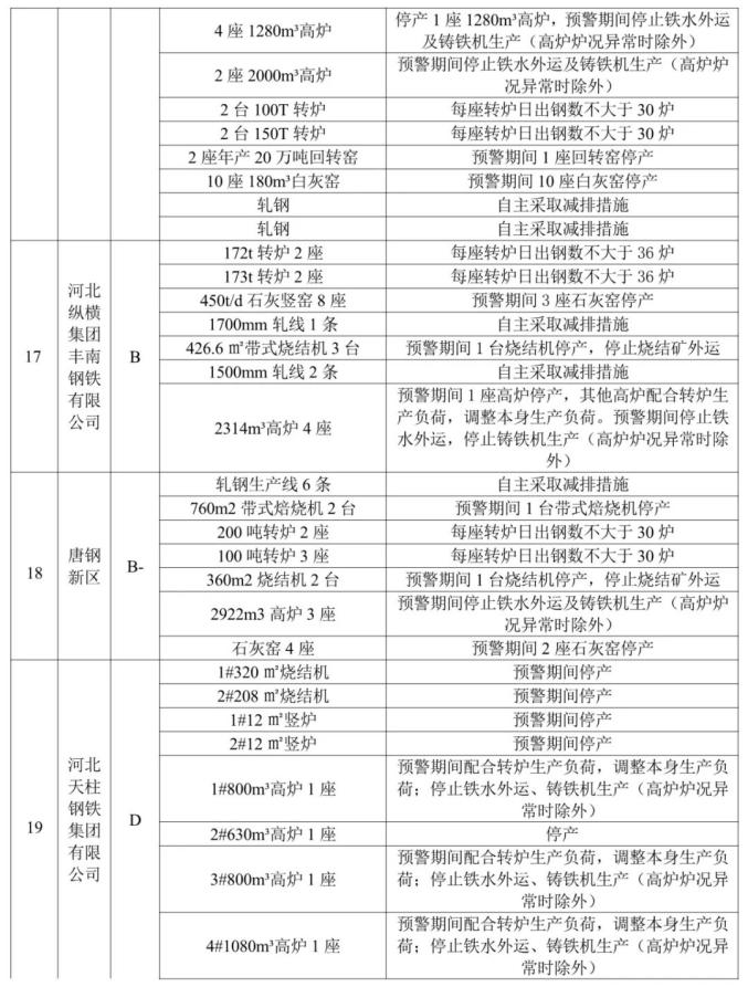 鋼鐵企業(yè)預(yù)警期間生產(chǎn)調(diào)控措施