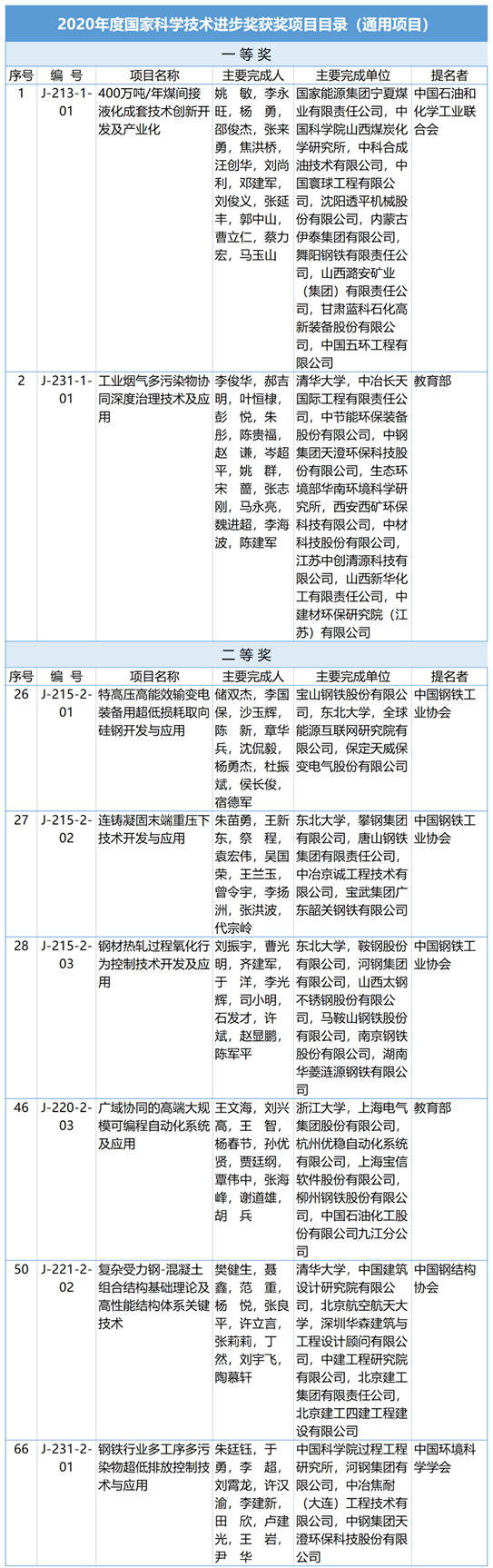 鋼鐵行業(yè)共有10個項目獲獎,其中,國家技術(shù)發(fā)明獎二等獎2項,國家科學(xué)技術(shù)進(jìn)步獎一等獎2項、二等獎6項。