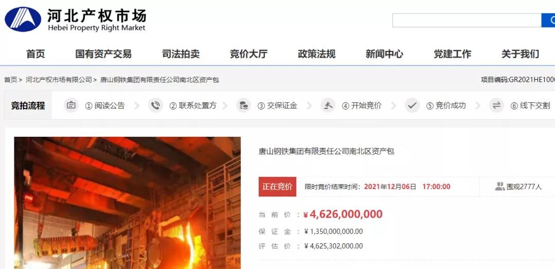 46億起!唐鋼集團南北區(qū)資產拍賣