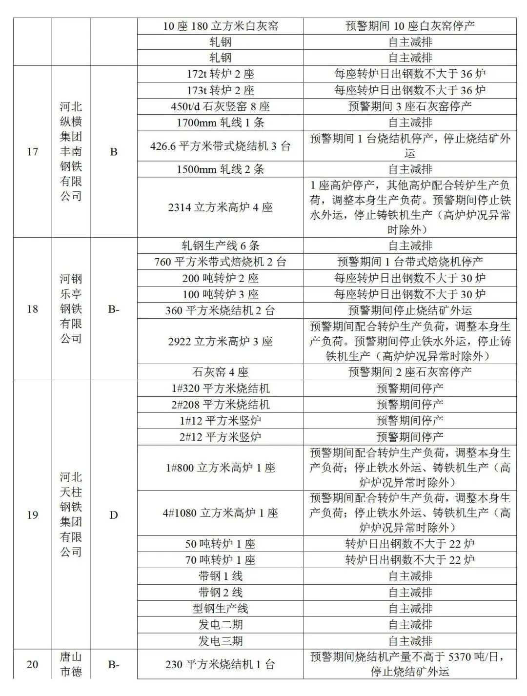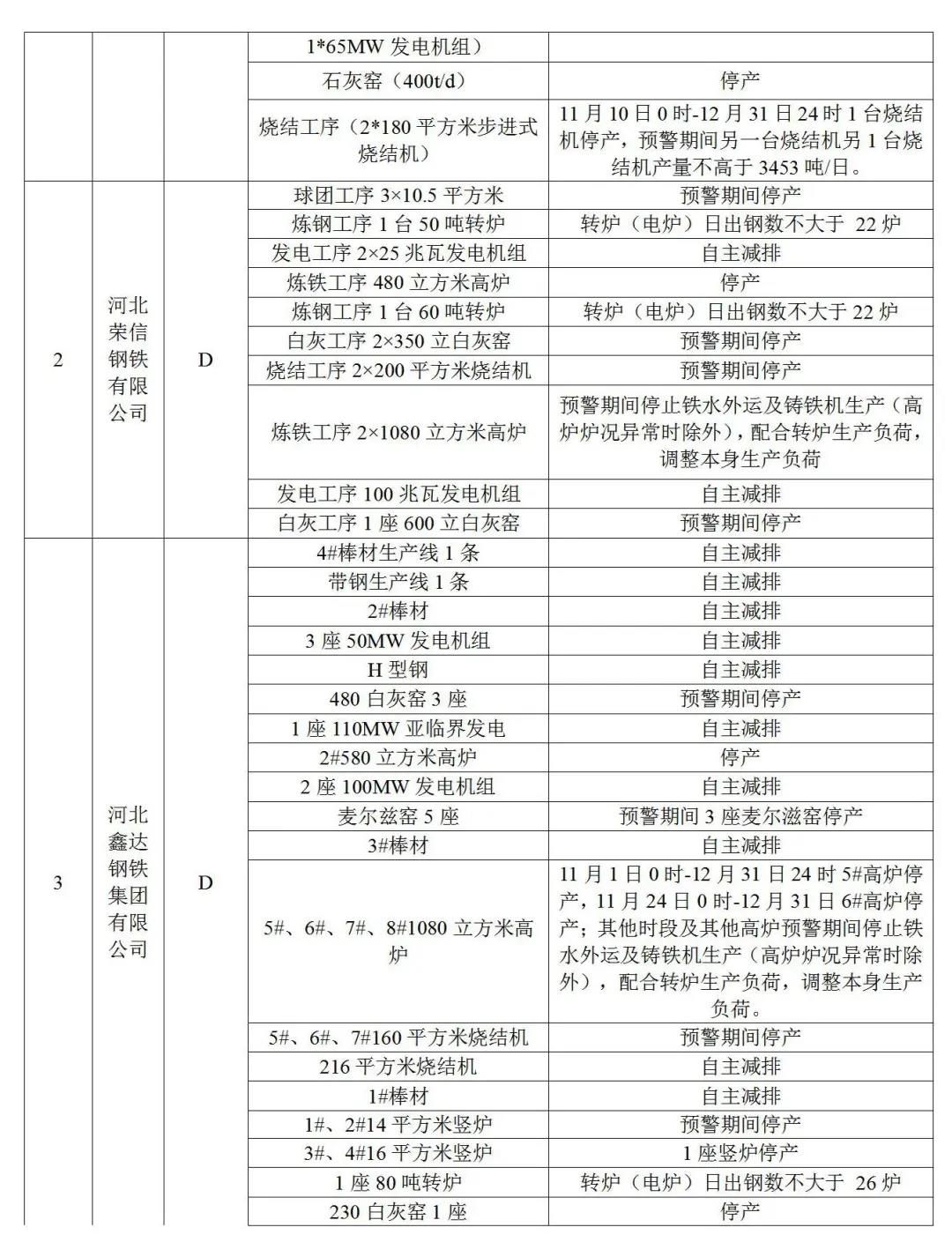3.水泥熟料企業(yè)(特種水泥除外)。冀東啟新、冀東三友、冀東灤州、冀東唐山分公司、泓泰水泥自主減排;飛龍水泥、燕東水泥、燕南水泥、曙光強(qiáng)興水泥、磐石水泥、圣龍水泥、耀東水泥、弘也水泥旋窯實施生產(chǎn)調(diào)控。