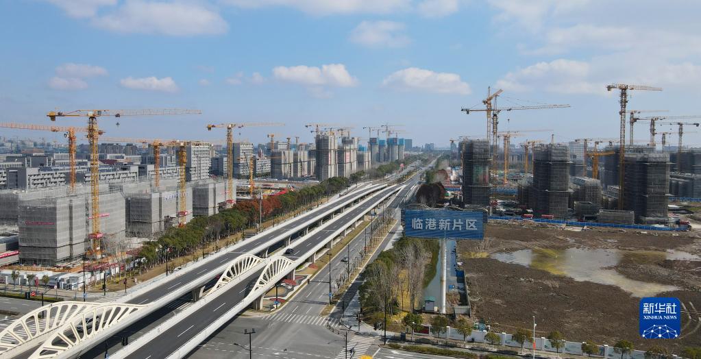 2月10日在中國(上海)自由貿(mào)易試驗(yàn)區(qū)臨港新片區(qū)拍攝的住宅區(qū)建設(shè)現(xiàn)場(無人機(jī)照片)。新華社記者 方喆 攝