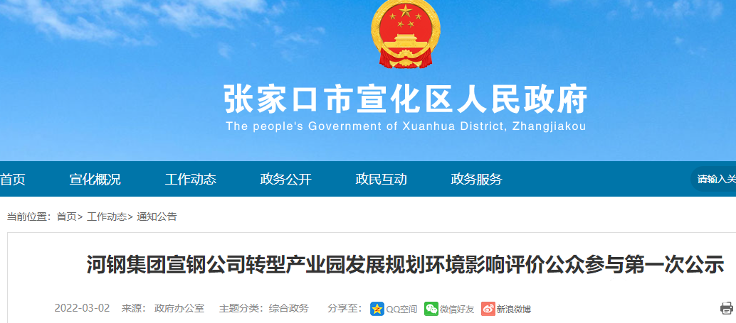 河鋼集團(tuán)宣鋼公司轉(zhuǎn)型產(chǎn)業(yè)園發(fā)展規(guī)劃環(huán)境影響評(píng)價(jià)公眾參與第一次公示