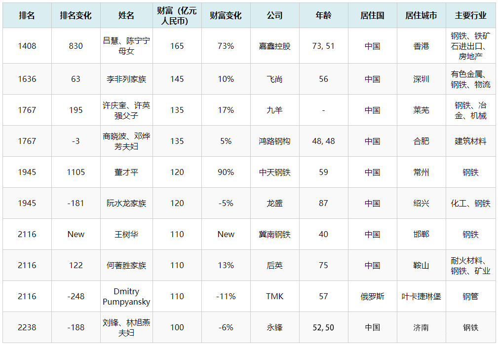 2022胡潤(rùn)全球富豪榜出爐!看看鋼鐵行業(yè)有哪些富豪上榜