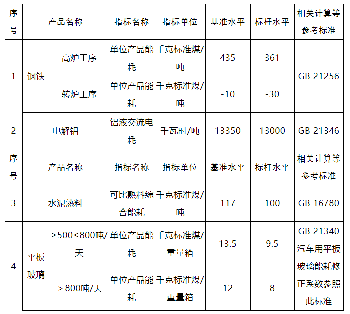 重點(diǎn)行業(yè)能效基準(zhǔn)水平和標(biāo)桿水平表