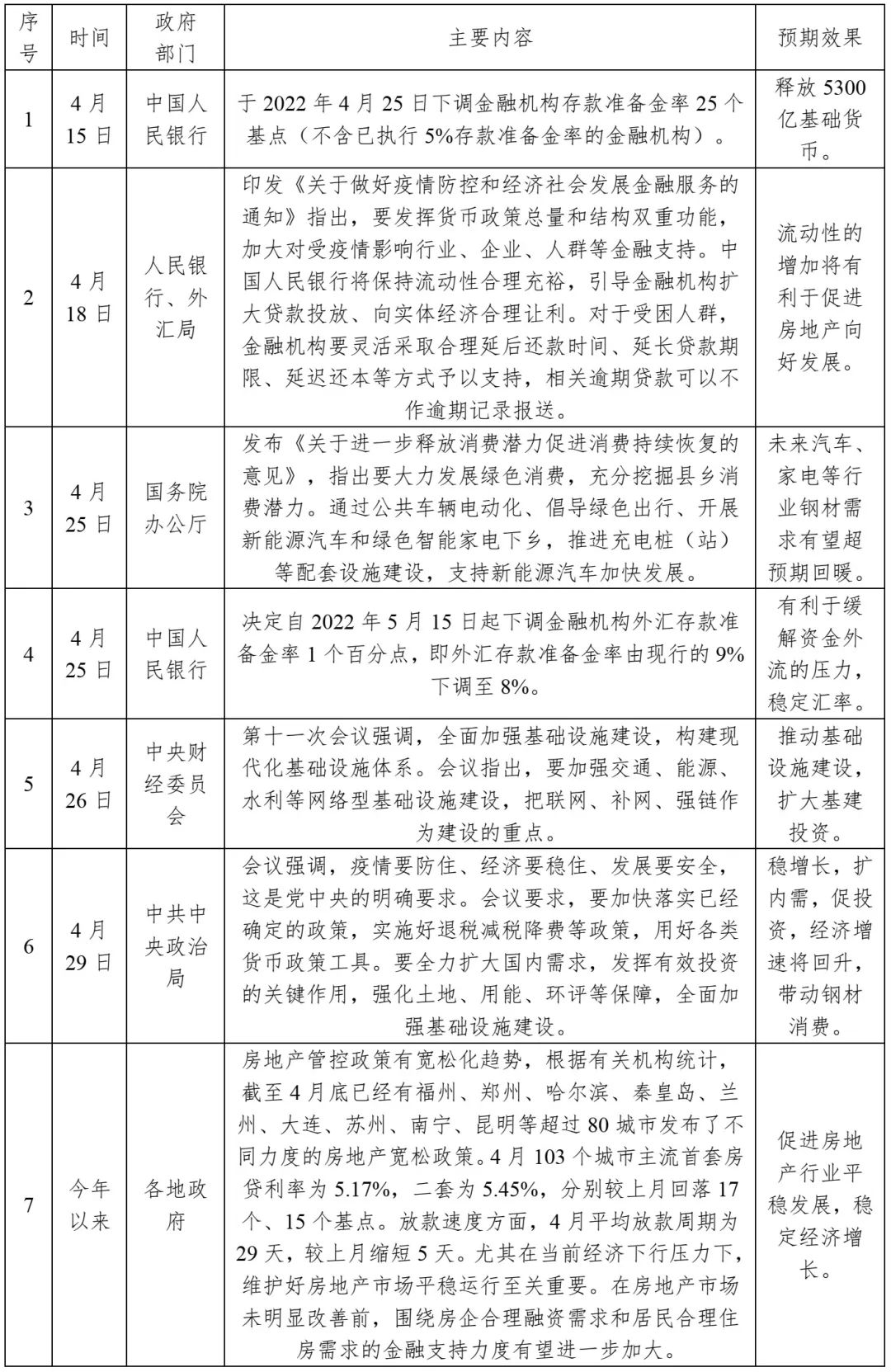 近期我國(guó)出臺(tái)穩(wěn)增長(zhǎng)相關(guān)政策情況見(jiàn)表2。