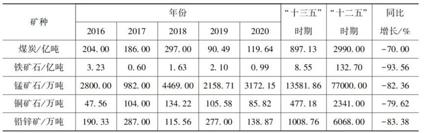 表2 “十三五”期間非油氣主要礦種勘查新增推送資源量