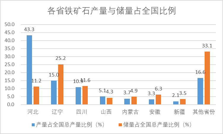 但就鐵礦資源儲量而言,按照2020年數據顯示,坐擁鞍本礦區(qū)的遼寧鐵礦資源儲量約為216.48億噸,約占全國鐵礦資源總量的25.2%,是當之無愧的家里有礦;反而鐵礦原礦產量高達43.3%的河北省,其鐵礦資源儲量僅占全國總量的11.2%,靜態(tài)儲采比要遠遠落后于遼寧省。