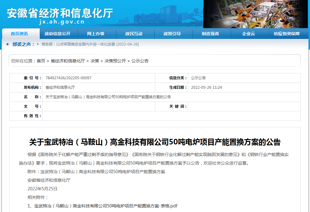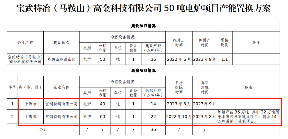 附件:寶武特冶(馬鞍山)高金科技有限公司50噸電爐項(xiàng)目產(chǎn)能置換方案