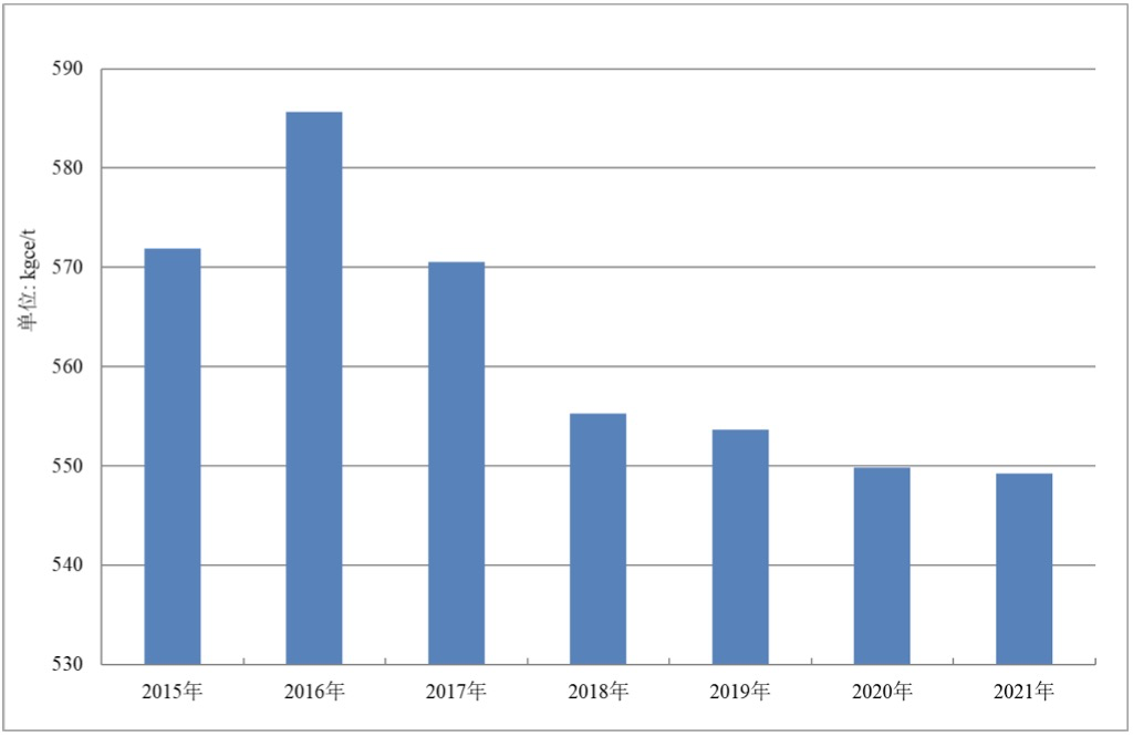 依據(jù)中國鋼鐵工業(yè)協(xié)會公布數(shù)據(jù),2021年全國重點大中型鋼鐵企業(yè)噸鋼綜合能耗為549.24千克標準煤,較2020年下降0.59千克標準煤,同比下降幅度為0.11%,和2015年相比,噸鋼綜合能耗下降比例達到4%。
