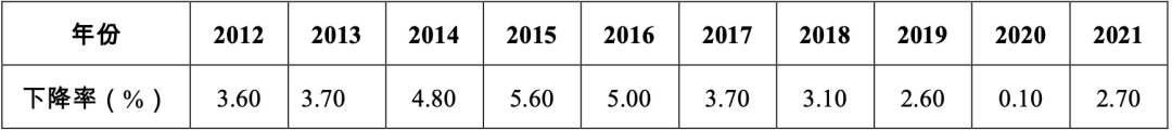 表1 2012-2021年單位GDP能耗較上年下降率