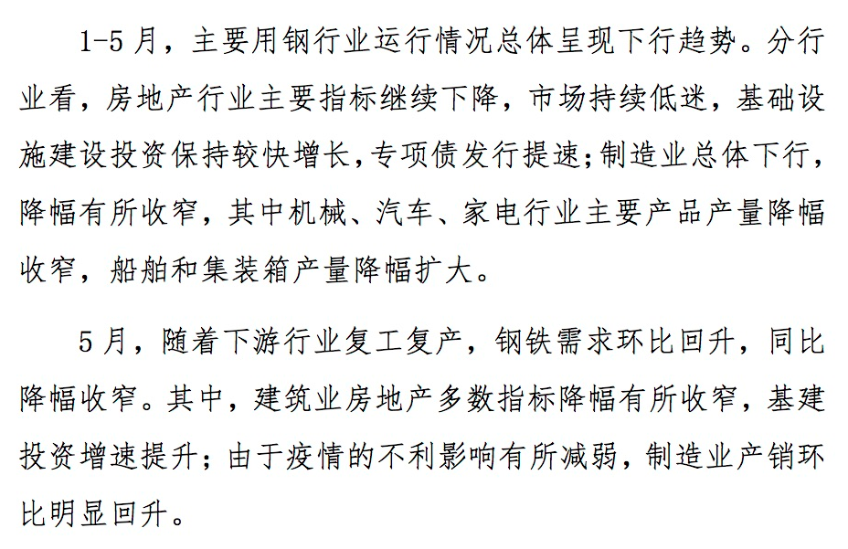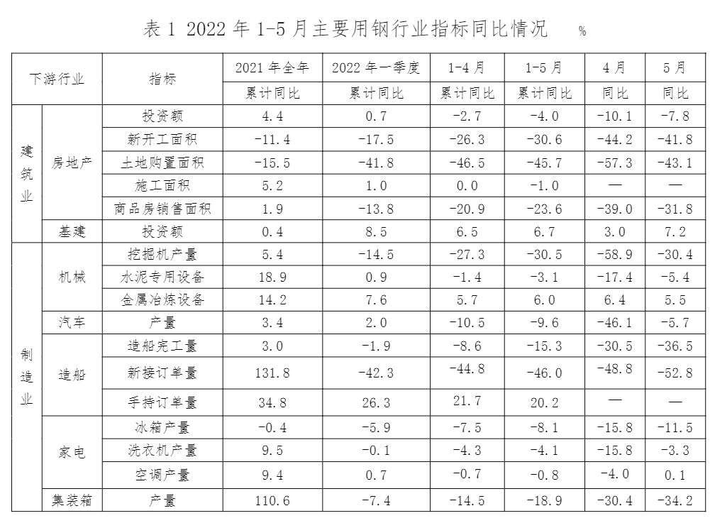 中鋼協(xié):主要用鋼行業(yè)運(yùn)行總體呈下行趨勢(shì) 5月鋼鐵需求環(huán)比回升
