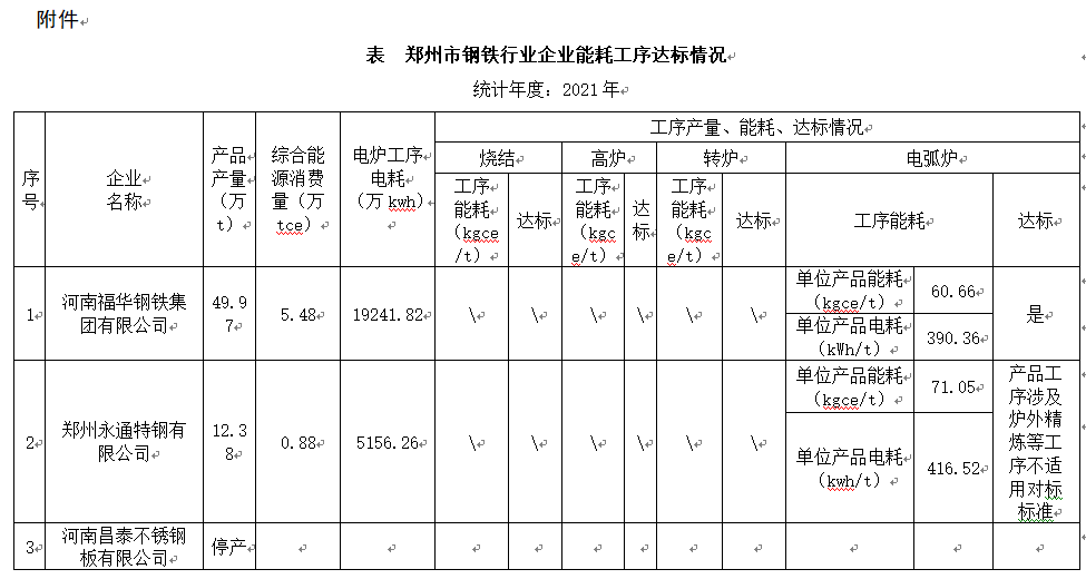 按照《河南省人民政府辦公廳關(guān)于完善差別化電價政策的通知》(豫政辦明電〔2018〕99號)和《鄭州市工業(yè)和信息化局關(guān)于開展2022年階梯電價執(zhí)行政策專項監(jiān)察的通知》(鄭工信節(jié)能〔2022〕9號)有關(guān)要求,鄭州市節(jié)能中心對全市鋼鐵、水泥、電解鋁行業(yè)企業(yè)2021年度能源消耗情況開展專項監(jiān)察工作,現(xiàn)將鋼鐵能耗監(jiān)察結(jié)果公示如下,如有異議,請于公示期內(nèi)以書面形式實名向鄭州市工信局反映。