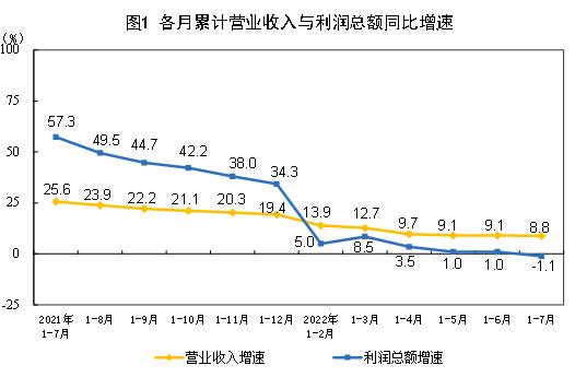 2022年1—7月份全國規(guī)模以上工業(yè)企業(yè)利潤下降1.1%