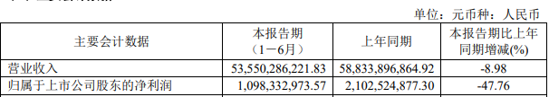 山東鋼鐵8月30日公布2022年半年度報(bào)告,報(bào)告期營(yíng)業(yè)收入535.50億元,同比下降8.98%;歸屬于上市公司股東的凈利潤(rùn)10.98億元,同比下降47.76%。