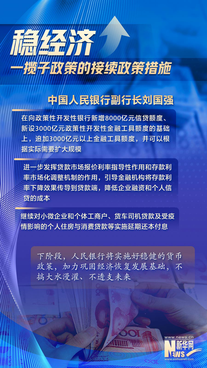 “當(dāng)前中國貨幣政策空間比較充足,政策工具豐富,既不缺價格工具,也不缺數(shù)量工具。”中國人民銀行副行長劉國強(qiáng)在吹風(fēng)會上介紹,人民銀行在向政策性開發(fā)性銀行新增8000億元信貸額度、新設(shè)3000億元政策性開發(fā)性金融工具額度的基礎(chǔ)上,追加3000億元以上金融工具額度,并可以根據(jù)實際需要擴(kuò)大規(guī)模。
