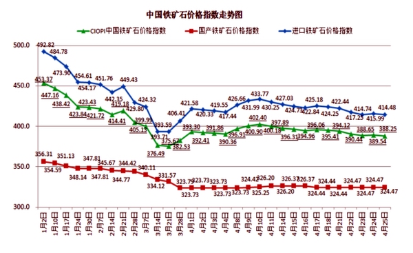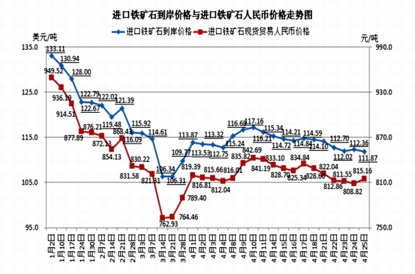 今年以來鐵礦石和國(guó)內(nèi)鋼材綜合價(jià)格走勢(shì)一覽