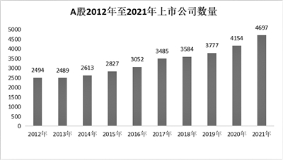 A股2012年至2021年上市公司數量 數據來源:Wind