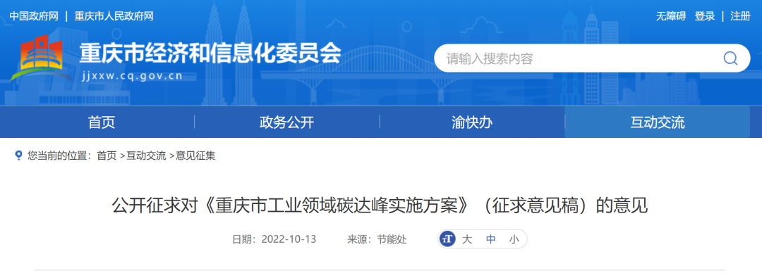 為貫徹落實《重慶市推進碳達峰碳中和工作方案》(渝達峰中和發(fā)〔2021〕2號)和《工業(yè)和信息化部、國家發(fā)展改革委、生態(tài)環(huán)境部關(guān)于印發(fā)工業(yè)領(lǐng)域碳達峰實施方案的通知》(工信部聯(lián)節(jié)〔2022〕8號),做好全市工業(yè)領(lǐng)域碳達峰工作,重慶市經(jīng)濟和信息化委員會牽頭草擬了《重慶市工業(yè)領(lǐng)域碳達峰實施方案》(征求意見稿),根據(jù)相關(guān)規(guī)定,現(xiàn)面向社會公開征求對該實施方案的意見。