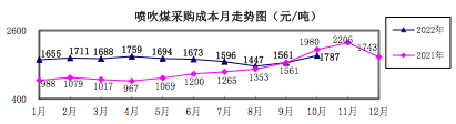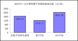 噴吹煤10月份加權(quán)平均折算成干基的采購(gòu)成本為1786.70元/噸,環(huán)比升高225.87元/噸,升幅為14.47%。1-10月累計(jì)平均折算成干基的采購(gòu)成本為1643.91元/噸,同比升高407.97元/噸,升幅為33.01%。