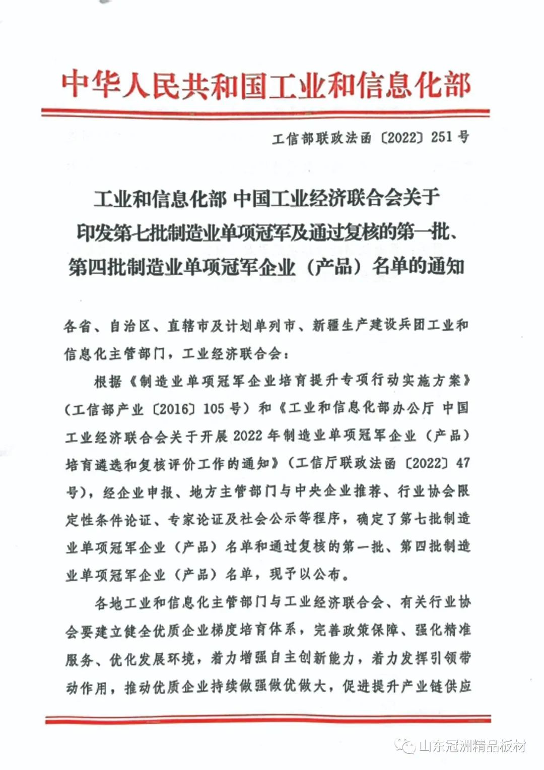 冠洲獲評(píng)第七批制造業(yè)單項(xiàng)冠軍企業(yè)。