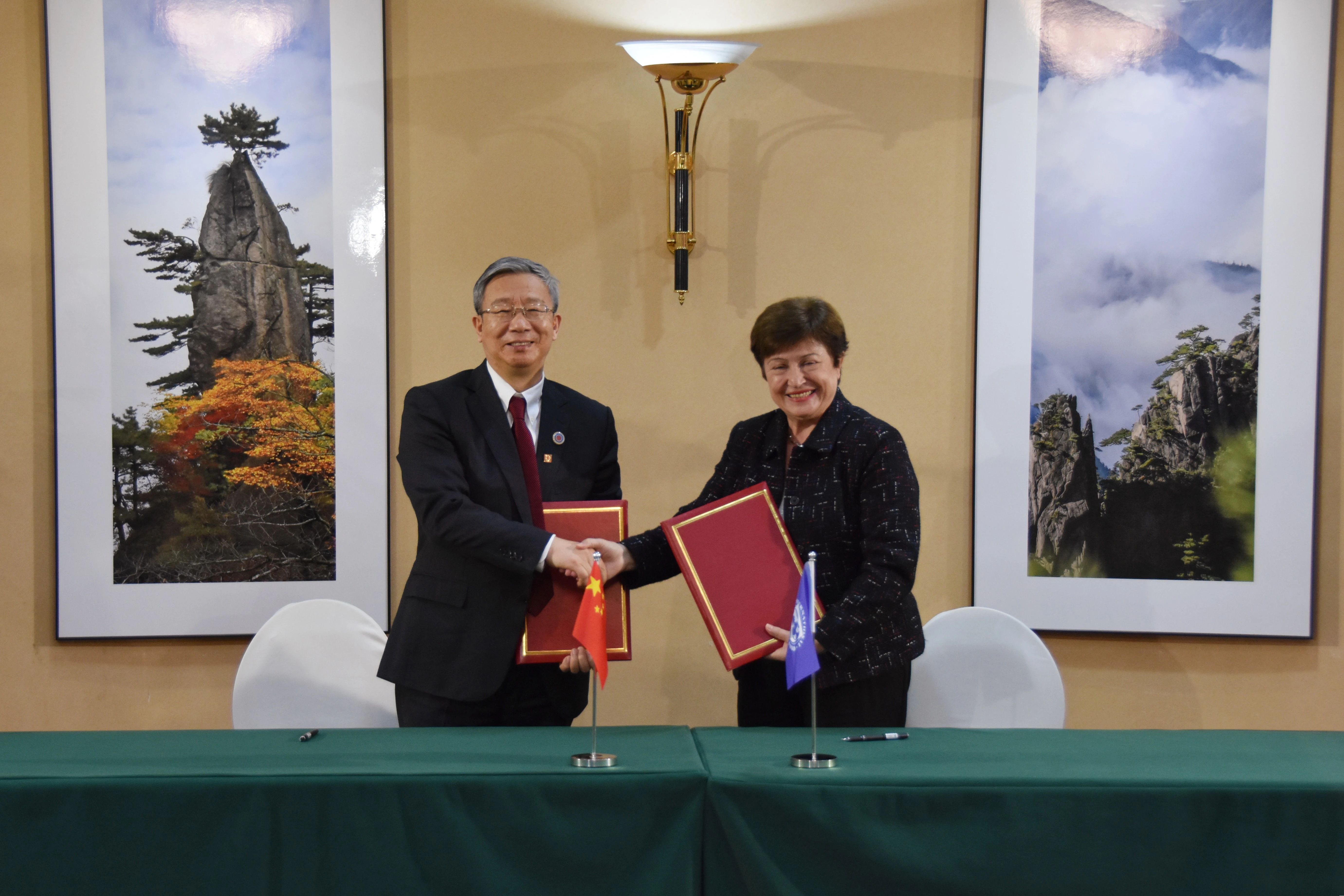 12月8日,在國務院總理李克強與六家主要國際經濟組織負責人舉行第七次“1+6” 圓桌對話會期間,中國人民銀行行長易綱會見了國際貨幣基金組織總裁格奧爾基耶娃。雙方就全球和中國經濟金融形勢、中國與基金組織合作等問題交換了意見。會后,雙方簽署了《中國人民銀行與國際貨幣基金組織關于能力建設合作的諒解備忘錄》。