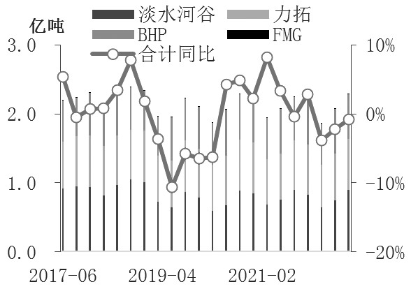 圖為四大礦山產(chǎn)量走勢變化