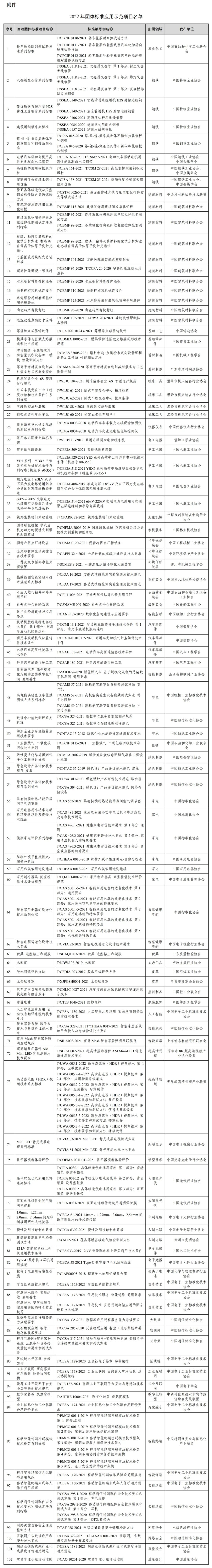 附件:2022年團體標準應用示范項目名單