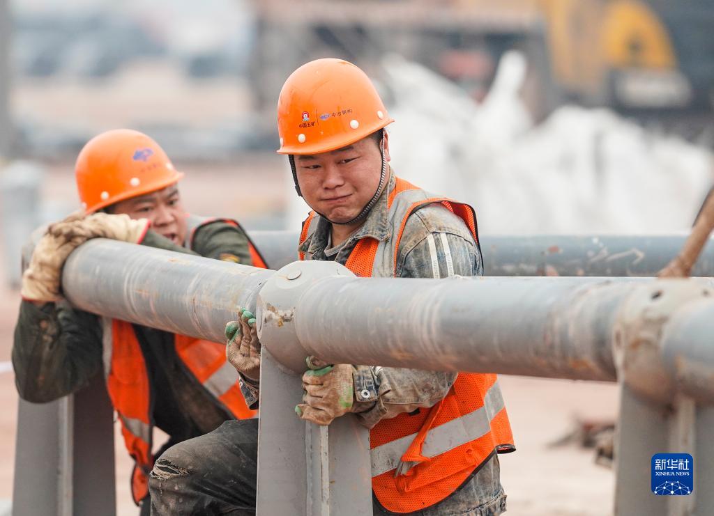 1月23日,工人在重慶兩江新區(qū)新能源汽車產(chǎn)業(yè)園基礎(chǔ)設(shè)施配套項目現(xiàn)場進行鋼結(jié)構(gòu)材料拼裝作業(yè)。新華社記者 劉潺 攝