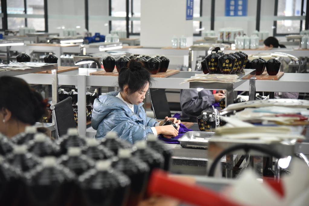 貴州省習(xí)水白酒包材產(chǎn)業(yè)園溫水園區(qū)內(nèi)一企業(yè)正在生產(chǎn)陶瓷酒瓶。新華社記者駱飛 攝
