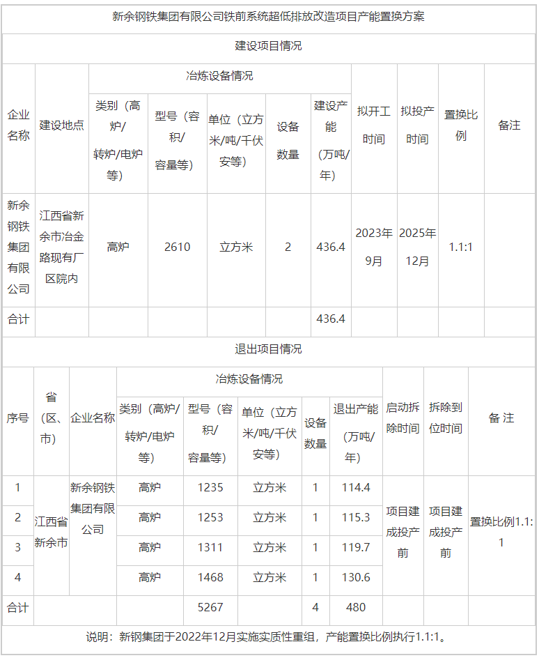 新余鋼鐵集團(tuán)鐵前系統(tǒng)超低排放改造項(xiàng)目產(chǎn)能置換方案公示