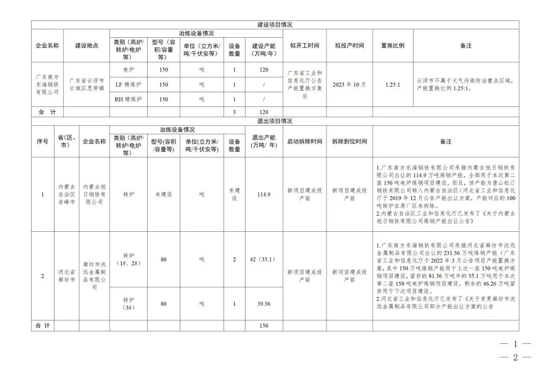 廣東南方東海鋼鐵建設(shè)第二座150噸電爐煉鋼項(xiàng)目產(chǎn)能置換方案公示