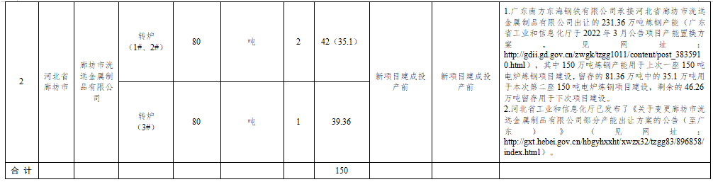 按照《國務(wù)院關(guān)于化解產(chǎn)能嚴重過剩矛盾的指導(dǎo)意見》(國發(fā)〔2013〕41號)、《國務(wù)院關(guān)于鋼鐵行業(yè)化解過剩產(chǎn)能實現(xiàn)脫困發(fā)展的意見》(國發(fā)〔2016〕6號)、《工業(yè)和信息化部關(guān)于印發(fā)鋼鐵行業(yè)產(chǎn)能置換實施辦法的通知》(工信部原〔2021〕46號)的要求,現(xiàn)將廣東南方東海鋼鐵有限公司建設(shè)第二座150噸電爐煉鋼項目產(chǎn)能置換方案予以公告,歡迎社會公眾進行監(jiān)督。