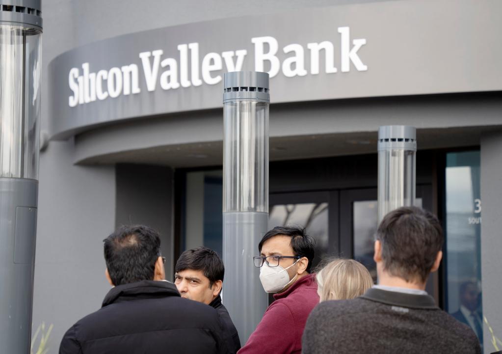 3月13日,客戶在美國加利福尼亞州圣克拉拉市硅谷銀行總部外排隊等候辦理業(yè)務(wù)。新華社發(fā)(李建國攝)