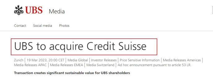 瑞銀表示,瑞信股東所持22.48股瑞信股票將換得1股瑞銀股票,相當(dāng)于每股0.76瑞郎,總對(duì)價(jià)為30億瑞士法郎。該交易預(yù)計(jì)將于2023年底完成,到2027年,每年將節(jié)省約70億美元的成本。這筆交易將締造一個(gè)全球性財(cái)富管理公司,整個(gè)集團(tuán)的投資資產(chǎn)規(guī)模達(dá)到5萬(wàn)億美元。