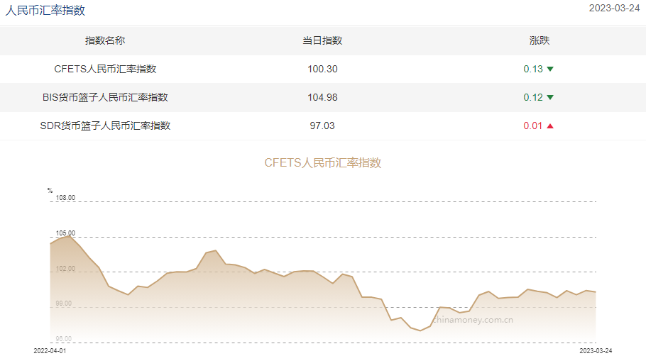 圖為截至3月24日三大人民幣匯率指數(shù) 來(lái)源:中國(guó)外匯交易中心