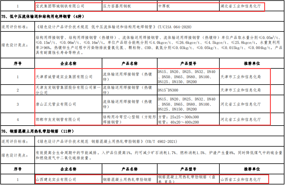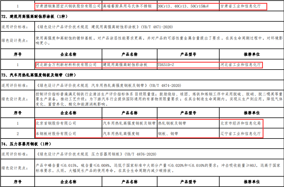 綠色設(shè)計(jì)產(chǎn)品名單(鋼鐵產(chǎn)品39種)