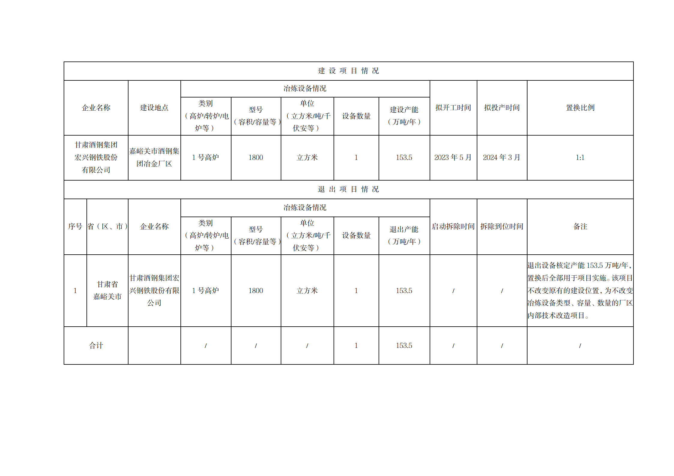按照《國務(wù)院關(guān)于化解產(chǎn)能嚴(yán)重過剩矛盾的指導(dǎo)意見》《國務(wù)院關(guān)于鋼鐵行業(yè)化解過剩產(chǎn)能實(shí)現(xiàn)脫困發(fā)展的意見》和《鋼鐵行業(yè)產(chǎn)能置換實(shí)施辦法》要求,現(xiàn)將甘肅酒鋼集團(tuán)宏興鋼鐵股份有限公司煉鐵廠1號高爐超低排放改造及大修項(xiàng)目產(chǎn)能置換方案予以公告,歡迎社會公眾進(jìn)行監(jiān)督。