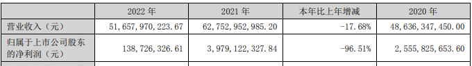 三鋼閩光4月27日晚發(fā)布2022年業(yè)績報告。公司2022年實現(xiàn)營業(yè)收入516.58億元,同比下降17.68%。歸屬于上市公司股東的凈利潤1.39億元,同比下降96.51%。