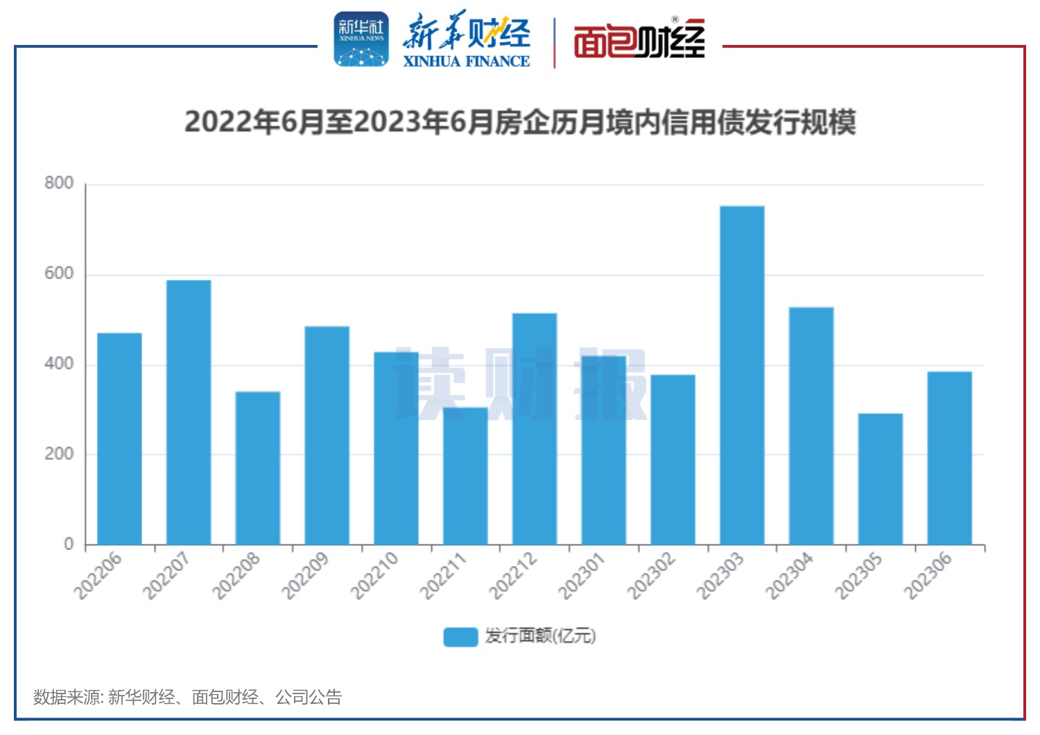 新華財(cái)經(jīng)和面包財(cái)經(jīng)研究員統(tǒng)計(jì)了國(guó)內(nèi)房地產(chǎn)開(kāi)發(fā)企業(yè)2023年6月境內(nèi)信用債和境外債的發(fā)行情況。